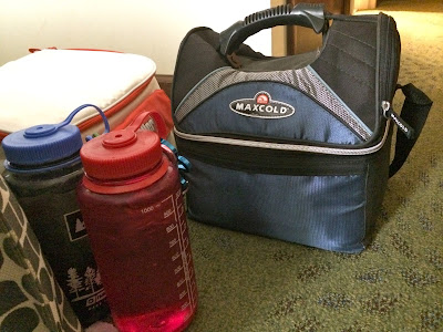 1. Large water bottles full of ice. Fill to the tippy top with water and it will stay cool for most of the day. And drink up. Don’t just bring it. DRINK it.