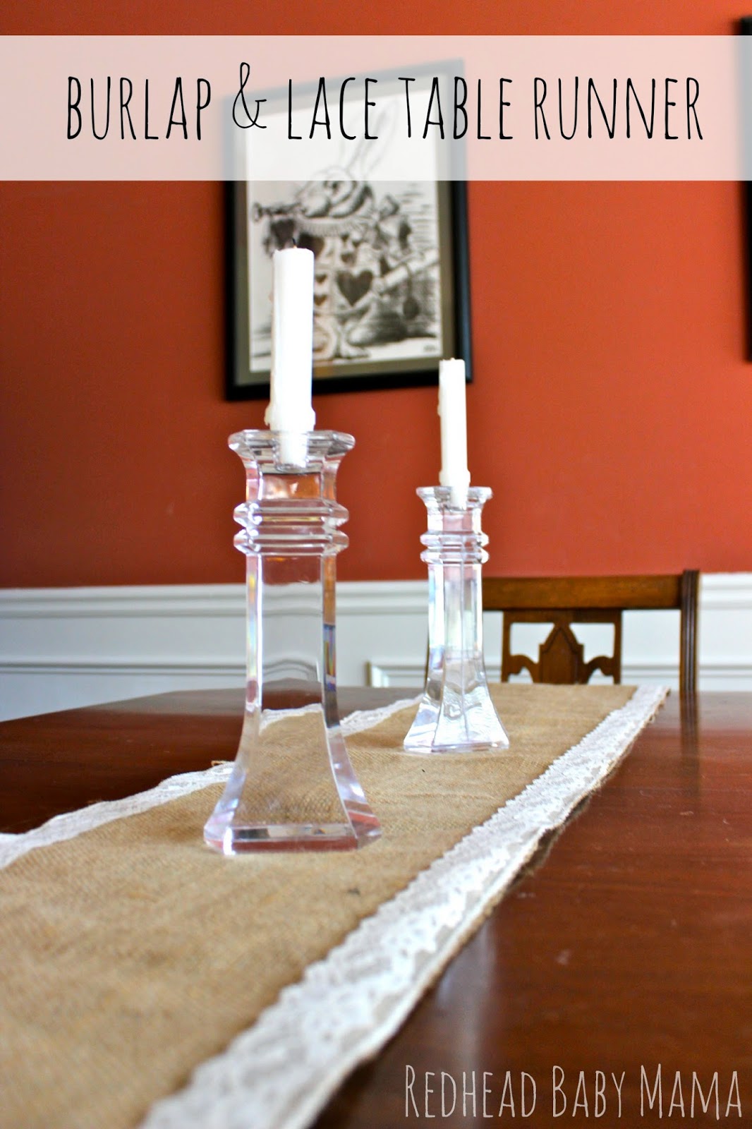 The project took me about 15 minutes from start to finish, and I love it. It’s fresher than a nude table, adds some rustic flare with softness from the lace. I even chose an extra length of burlap for a second table runner or maybe to help with my backdrops and photography.