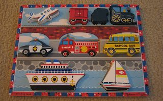 If you've seen Red play with toys at our house, you know that his Melissa & Doug chunky vehicles puzzle is his number one choice. It's one of the first things to come out in the morning, and nearly the last thing to get put up. Red takes the plane piece first, and crawls it around the … [Read more...]