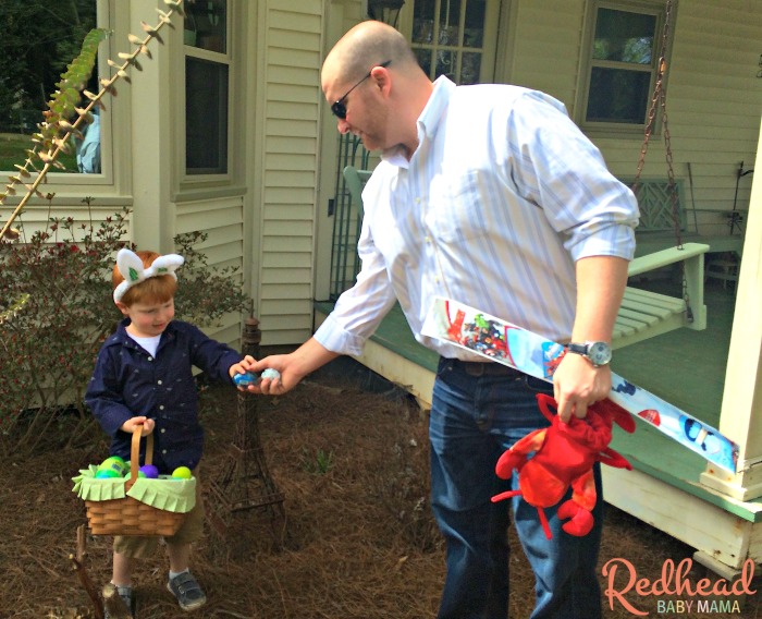 Daddy helped carry some loot and assist with the harder-to-find gems, as always. I can tell you that this preggo was happy that he took on the task. Bending down to gather eggs is no longer an easy thing to do as the third trimester approaches.