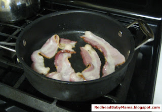 2. While those heat up, start the bacon pan and measure your other ingredients. Cook the bacon nearly to death so it becomes nice and crispy.