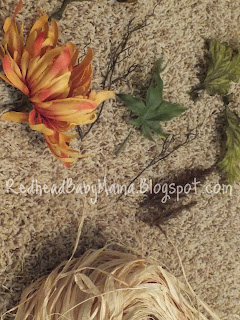 In super crafty fashion, I had already torn apart a bunch of seasonal faux greenery, a hank of raffia and scrap fabric I got on clearance, all from Hobby Lobby (where, Krystyn noted, all of my money goes… she’s totally right!). I used some Heat N Bond to get a big flat fabric surface to adhere to my hair clip and corsage pin.