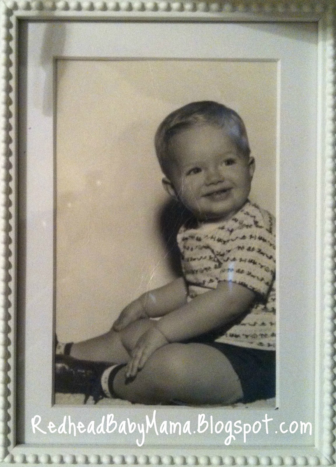A few weekends ago, I went to help Mom and Nana with Grandmother and Grandaddy. Among the treasures I found was a stack of photos of my Dad when he was little. They ranged from birth to 4.5 years old. A few of them REALLY look like me, but most of them are a dead ringer for Red. Take a look at this gem, from when T was 16 months old; the exact same age Red is now!