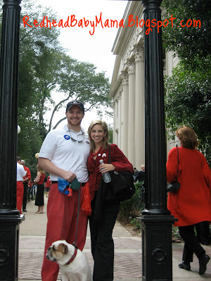 In honor of UGA Football season starting tomorrow, I’m sharing a picture from Dooley’s first trip to Athens. After traipsing around campus all morning, we had to walk back to the fraternity house. Up Baxter street. For anyone who is familiar with this street, it’s a dead uphill trek, and Dooley wasn’t having it. He collapsed and Hubs had to carry his 6 month old 35lbs up the hill!