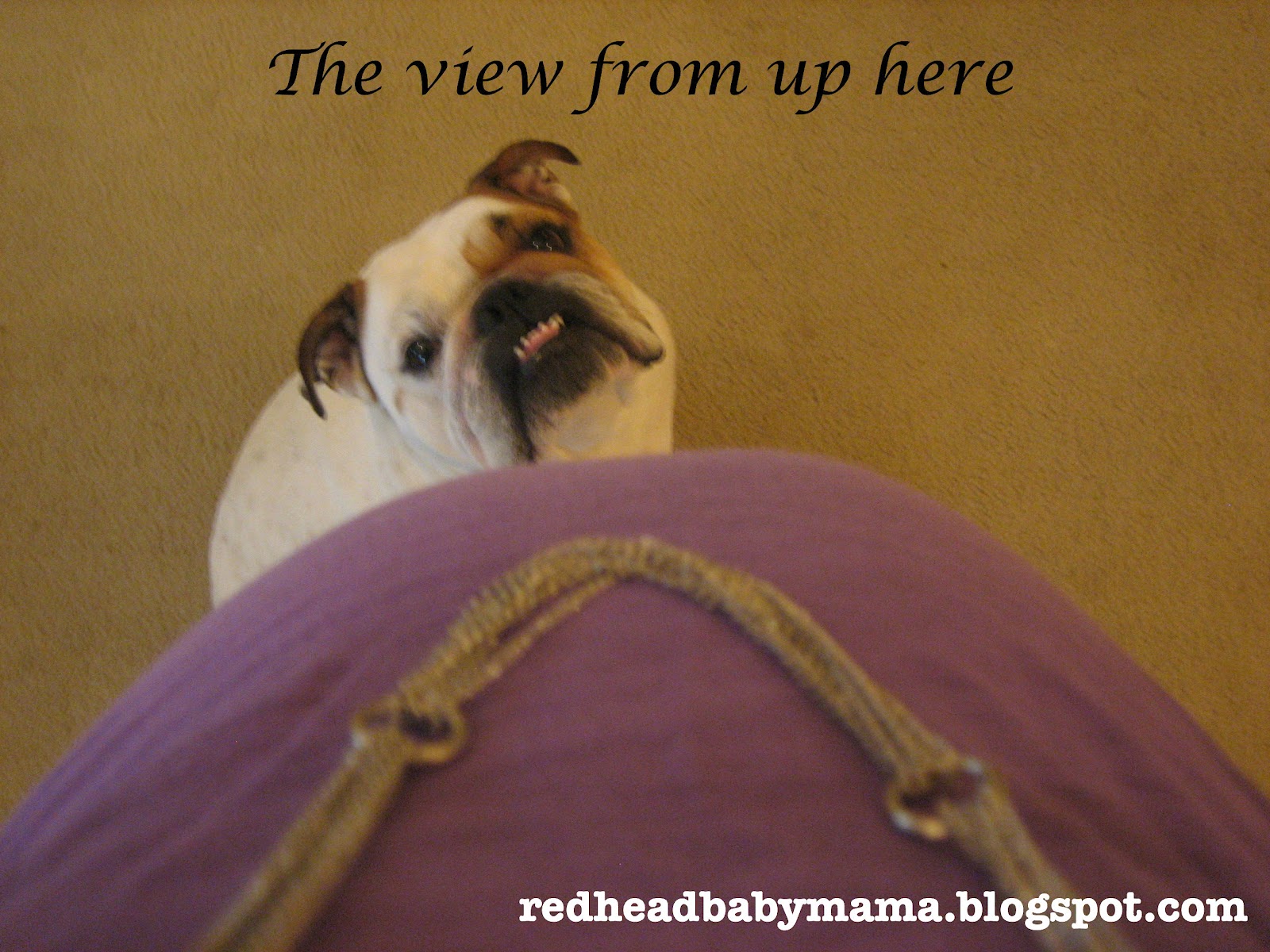 This was by far my favorite pregnancy photo. I had to position the Doo about 15 times to get the photo right, and in focus, and the treat in my hand out of the frame. But pretty good, huh?!