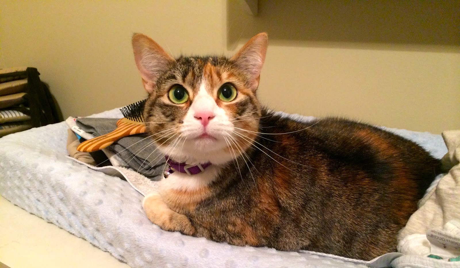 … and Kitty, who has taken over the unused changing table pad and made it her personal nest amongst the laundry piles and whatnot. What have your pets done lately to make you laugh?