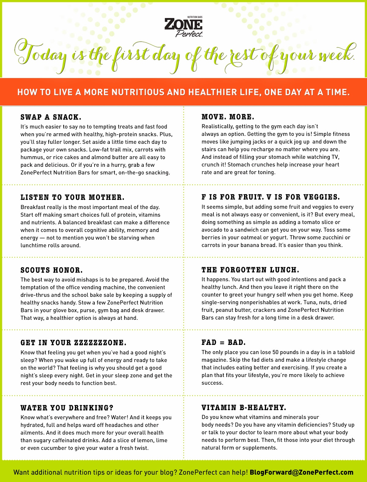 I have never tried Zone bars but they sound yummy! I love the Zone Perfect list of tips too, very helpful.