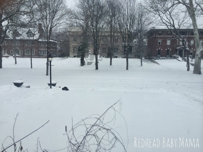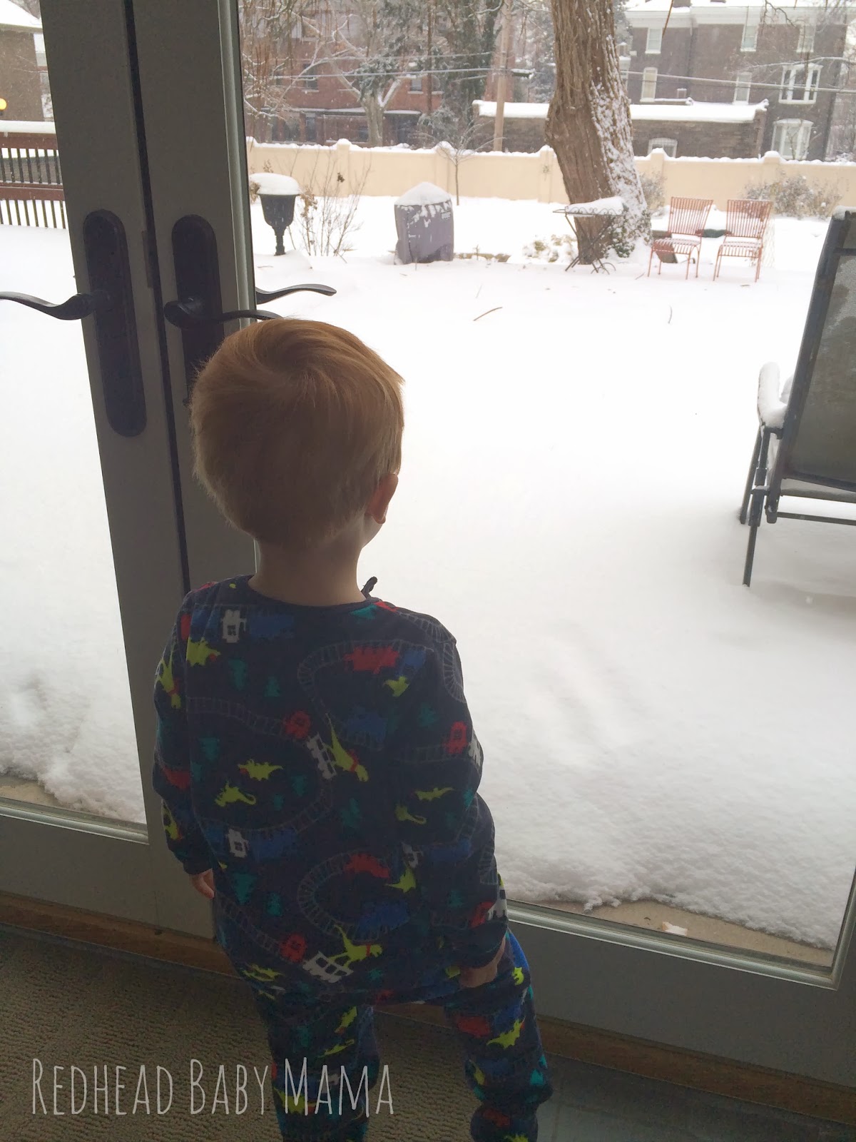 It was funny to watch his surprise and sheer enjoyment of the whole thing. Until I made him put on his seatbelt. That was not so much fun… When we arrived in MO, it was SNOWING like crazy. I lived 11 years of my life in New Jersey, so I’ve seen my great share of snow and ice. I’ve lived in it, and I don’t miss it. Not one bit. So this first bit of MO that greeted me at the curb was a little much. A salty, slushy mess that eroded cars, caused spinouts and laughed at my Georgia “boots” that I mistakenly thought could hoof it. (please keep in mind that the piles of snow you DON’T see are FEET tall and most of what is left on the ground here is ice.)