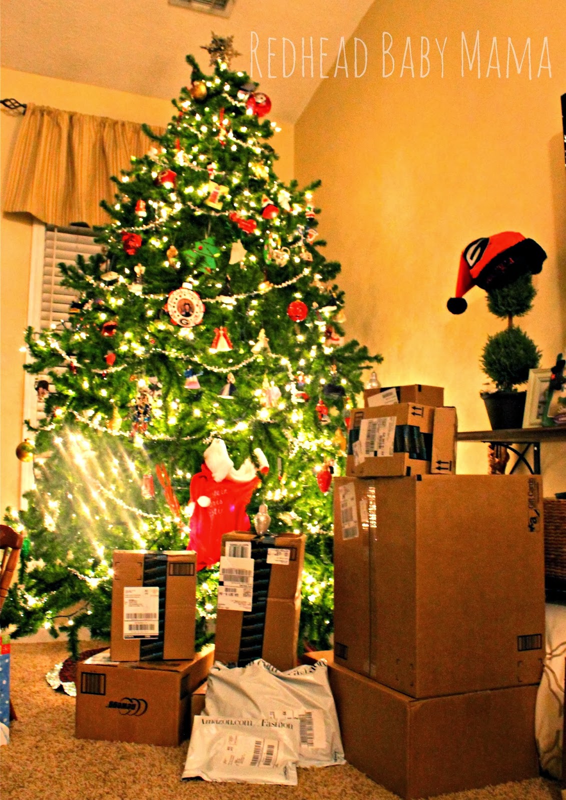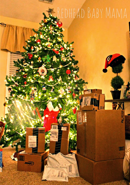 But with Thanksgiving being late this year, a week spent on the cruise, and the sick guy, there was no time. We both bought craploads of presents for each other on the same day. From the same website. From the same account. Come Christmas week, our tree looked a little like this, which made us pee ourselves from laughing so hard. The UPS man must love our family.