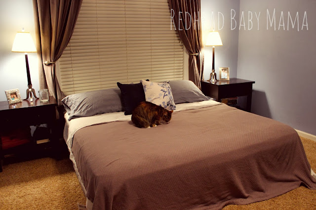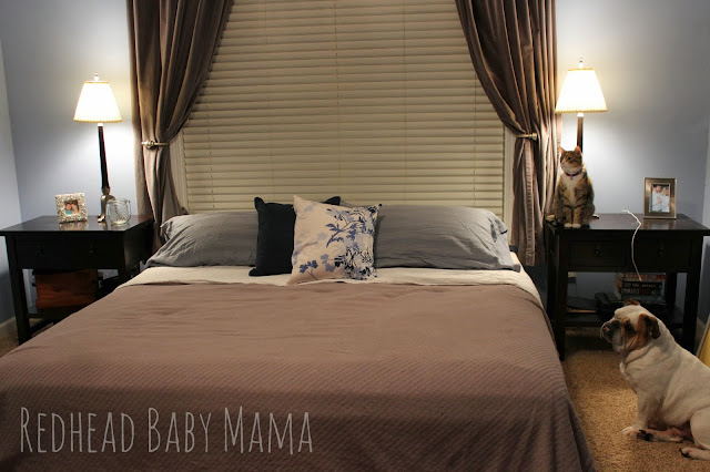 When you think of a Bachelor pad, you typically think of mismatched furniture (which was VERY true for us until a few years ago), eating chinese food while sitting on milk crates, and for the most part, a mattress set resting on the floor. It screams undecorated, casual, careless living.  … But that’s what we have right now.  Hubs and I decided that due to a very large bulldog, a snuggly kitty, two adults, and very rarely an early-waking toddler, that we needed a bigger bed.