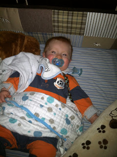 We got all the way down, and all the way back to the front of the neighborhood. YES! Red started to fuss a little bit. All that exertion had worn him out, and he needed his paci again. My face fell. Where was the paci? And the entire Paci Grip?!