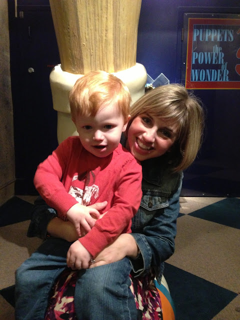 Red, Hubs and I went to the Atlanta Puppetry Arts center this week to catch a wonderful show – we sat on the Pinocchio foot like we did when Red was 6 months old! 18 months later, here we are! What a difference…