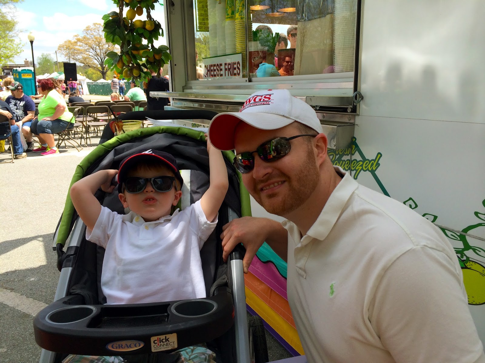 Sunday, spur of the moment (and very un-characteristic of our family), we decided to head up to the Big Shanty Festival in Kennesaw. A nearly 80 degree day (where did Spring go, exactly?!) caused hats, sunglasses and a canopied stroller to be drug out, which I suppose is summer’s cue to enter. I hardly took any photos at all because we were having so much fun eating carnival foods, shopping local wares and goods, playing on the grounds and seeing the history downtown Kennesaw has to offer.