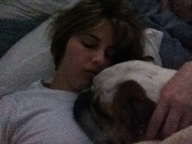 So this morning, I snapped a shot of me and Doo. This is how Hubs and I usually wake up in the morning. To Dooley snoring in our faces. It’s really quite therapeutic and relaxing, contrary to what my mom might tell you 🙂
