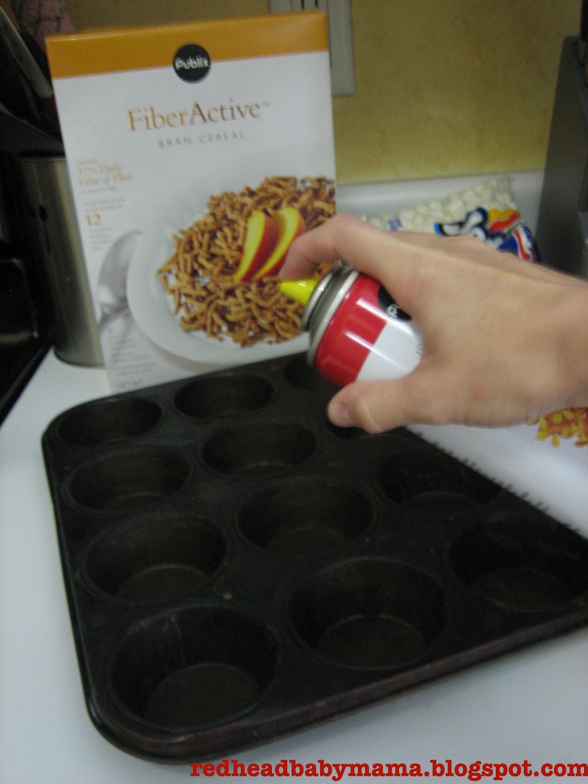 1. Heavily PAM one or two muffin tins. (I used one and a half)