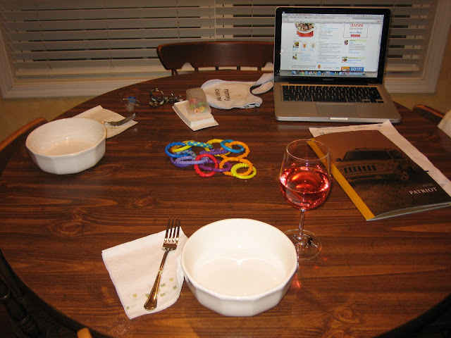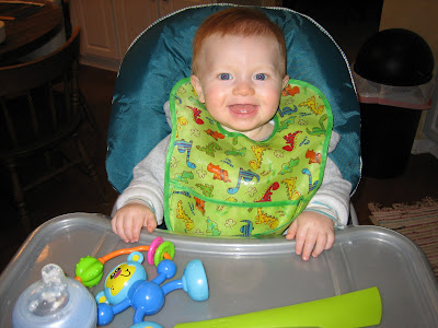 Red’s highchair is in the kitchen, as well as his cups, bowls, spoons, toys, bibs, pacis, etc. The list goes on and on. Seeing as I try to streamline our life as much as possible, it results in worlds colliding. Like last night for instance.