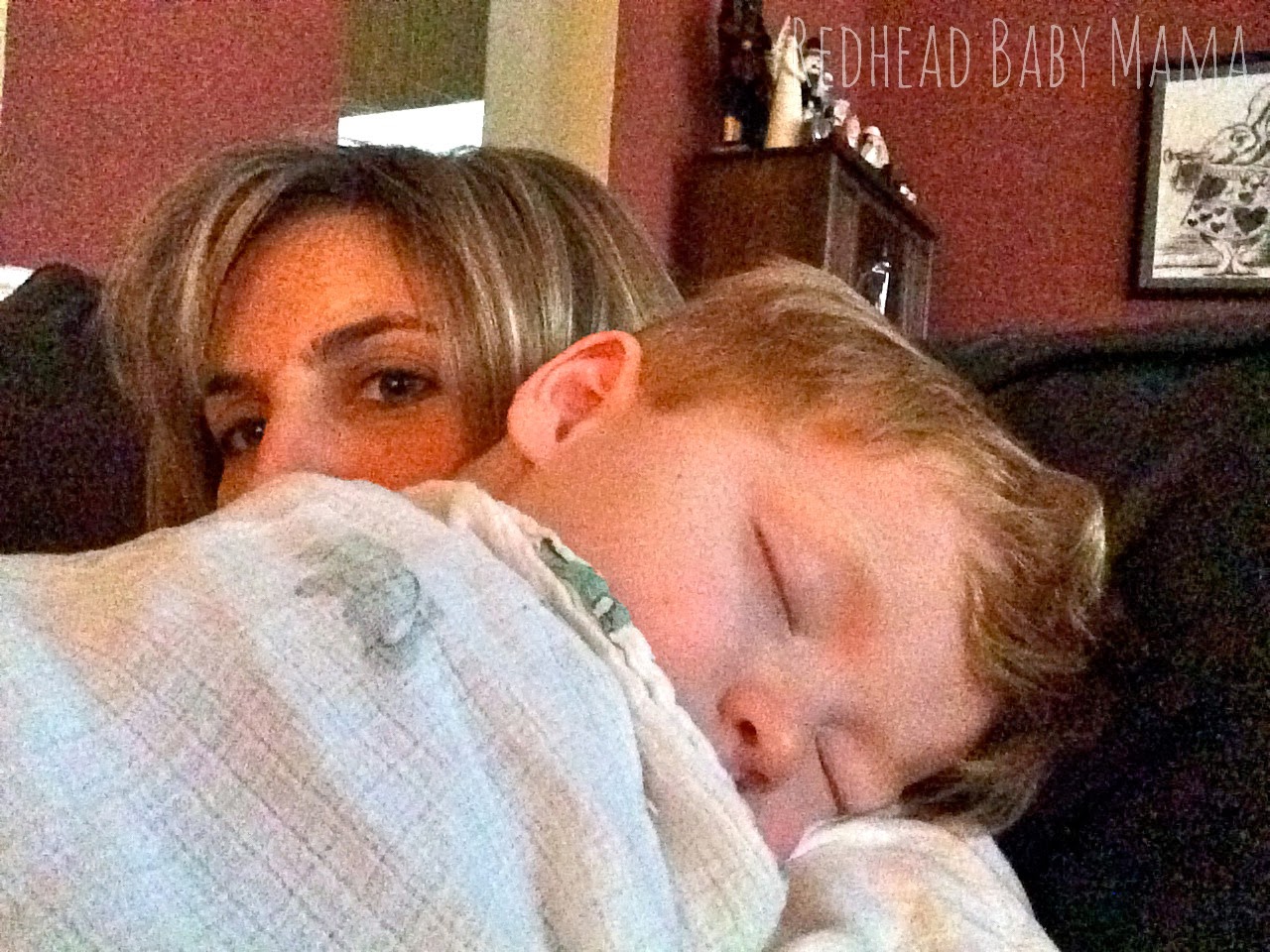 A few hours later I had a cranky, acting-out, achy little boy that wanted to be held and promptly passed out. On top of me. (36 pounds at over 3′ is no small thing!) And I’m sure I share these sick/hold pictures more than you would care to see over all the social media platforms. My excuse? It’s one of the few times he’s still enough to focus on!