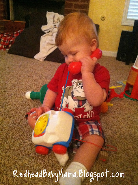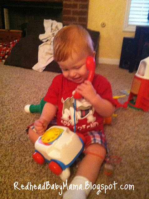 She had originally picked it up at Big Lots when we were visiting, but we wouldn’t pack cram it into our suitcase. She and T sent it down just days after we left. Red took to it immediately, calling people, dialing numbers on the bell style rotary, and dragging it behind him to allow make other people in the house talk, too.