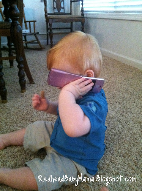 For a few weeks now, Red has grunted and waved his hand in the direction of the phone, whenever we are on it. He wants to “talk” to Nonna, T, and Grandmartha, or whomever might be ON the phone with us (even work!!) It got so bad at Mom’s house, he turned a melon baller into a phone.