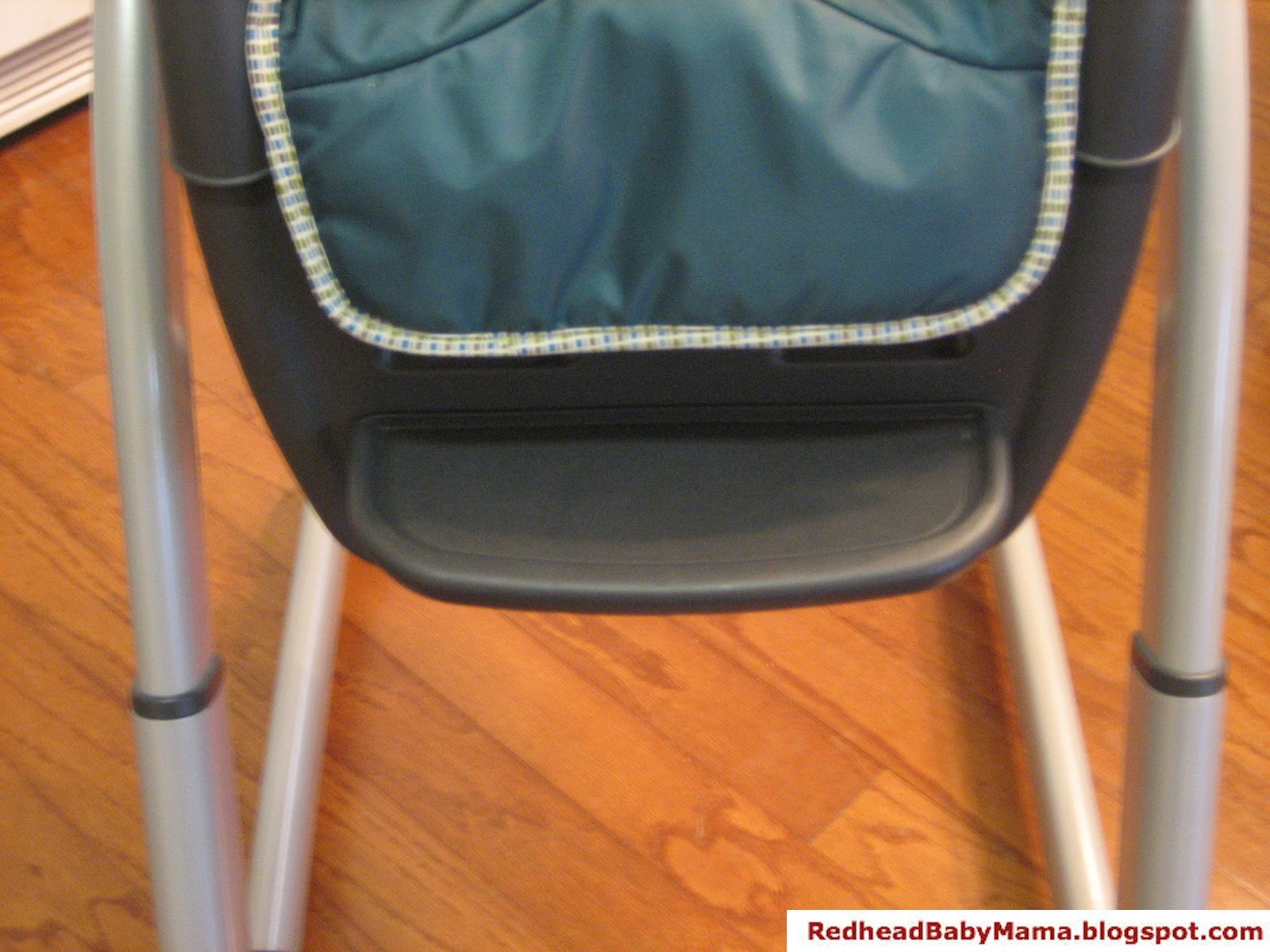 Graco installed a sweet height adjustment feature. If you decide to feed the baby on various chairs with different heights, the highchair will follow you. Want to stand and feed? The high chair raises back up to 6 different levels. There are large red hand levers on the legs, beneath the seat height, that can be grabbed, depressed and the chair moves up and down with relative ease (in a photo later in the blog). I have used this function a lot. Especially when Hubs and I have turns feeding Red. (I’m 5’3″ and Hubs is 5’11”).