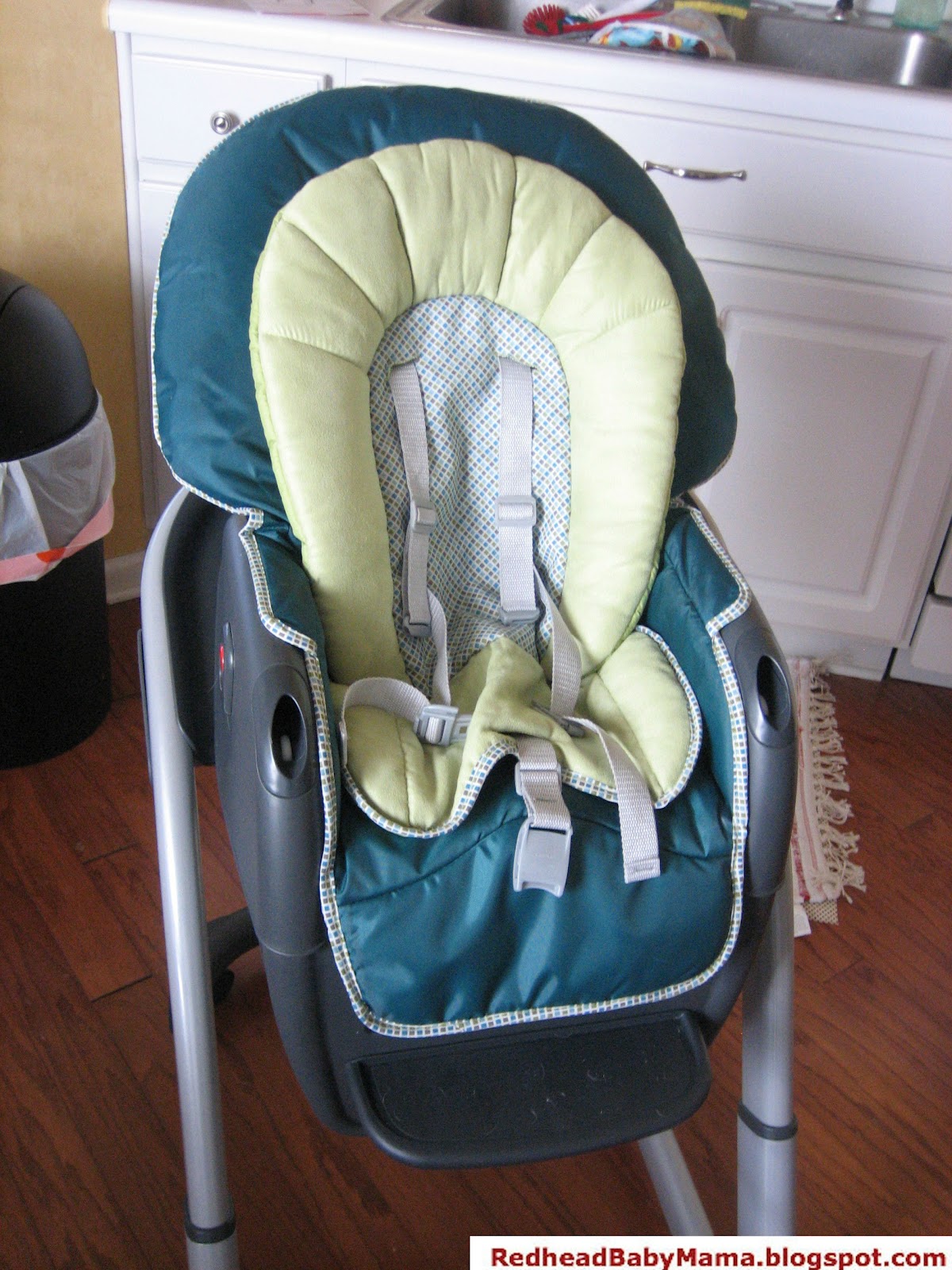 I started out wanting a FP Space Saver HighChair. We don’t have a very big eating area in the kitchen, so I was looking to save some space. When I visited the store to see it in person, it was too small! We used one at a friends house, it didn’t allow Red to sit comfortably or play in the kitchen. It also gets dirty EASILY, although it is machine washable, doesn’t wipe clean quickly and stains easily.Then I noticed the Graco Blossom 4-in-1 Seating System