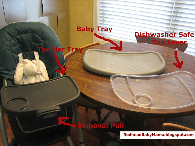 This high chair has so many more features than ours! I love the tray, though (ours has the same removable piece.) It’s so easy to clean – even if you can’t fit into the dishwasher.