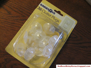 From our registry at BabiesRUs, these have finally come in handy. They came in a pack of 36, costing less than $3.50, which has stretched a long way. I’m glad there were so many in the pack, because I have 8 uncovered outlets in the den alone, much less those that are covered by furniture.