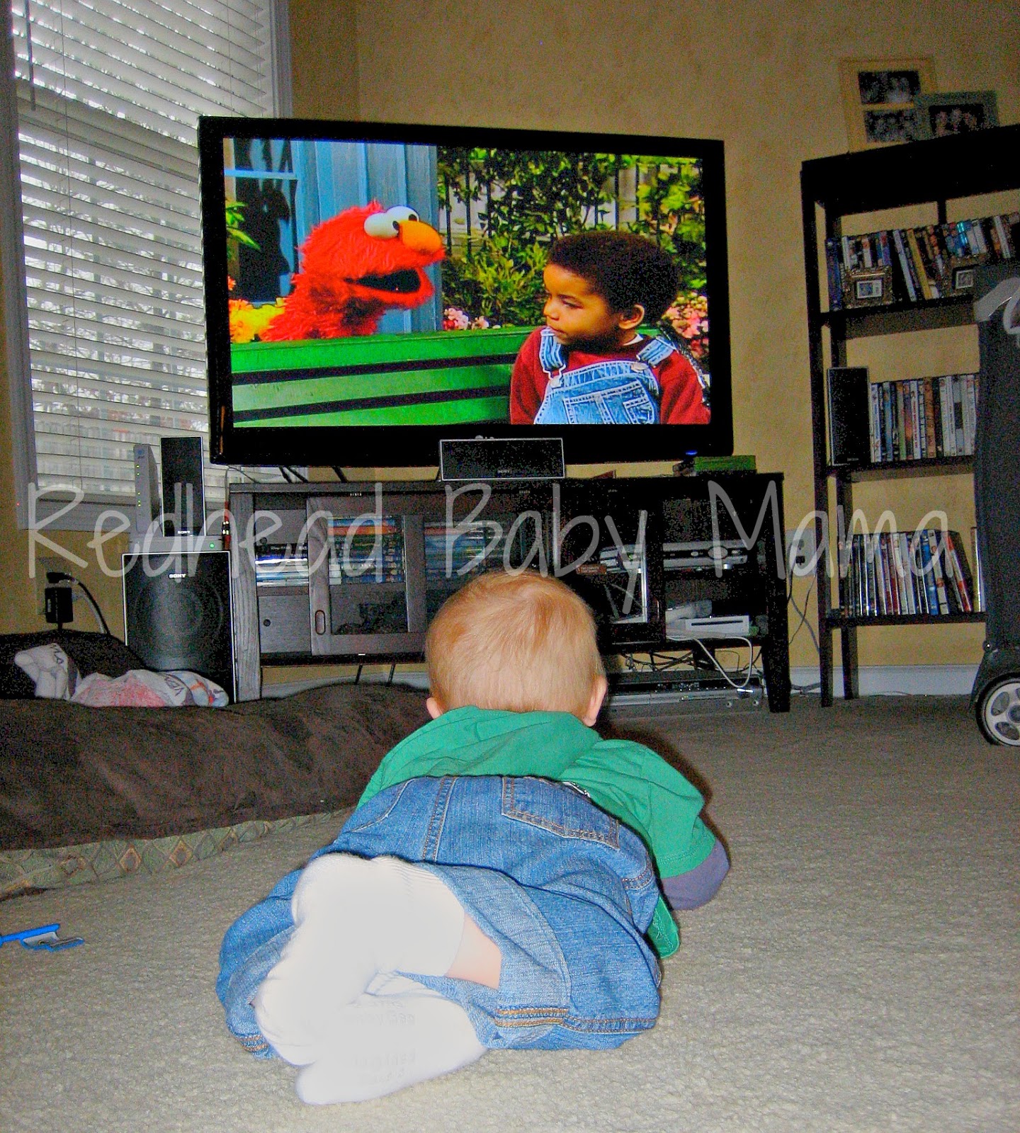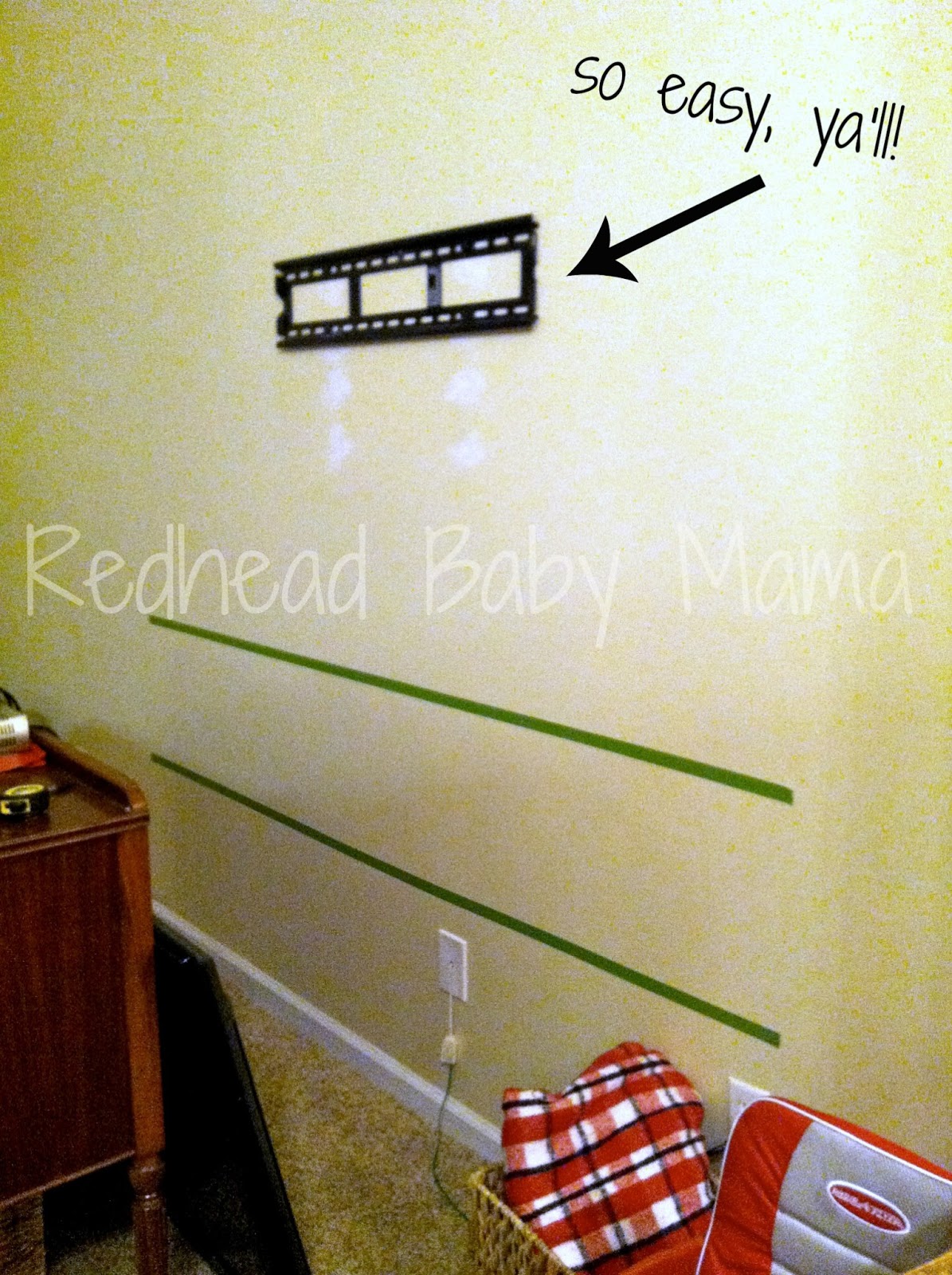 The shelves went to live in a baby-free zone, but the TV remained on the low bachelor pad media center table. When E came to live with us for 5 weeks, we suddenly had a deluge of 4 licked-cracker hands trying to touch Elmo’s furry face. Big fat fail. We were seconds from having the giant tv give us our first ER visit.
