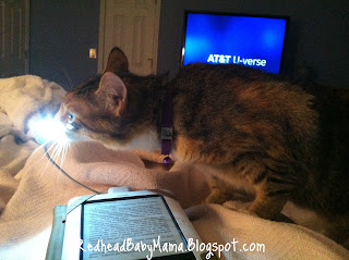 and at night, kitty likes to read with me. Now we just need to name her! Any thoughts?!