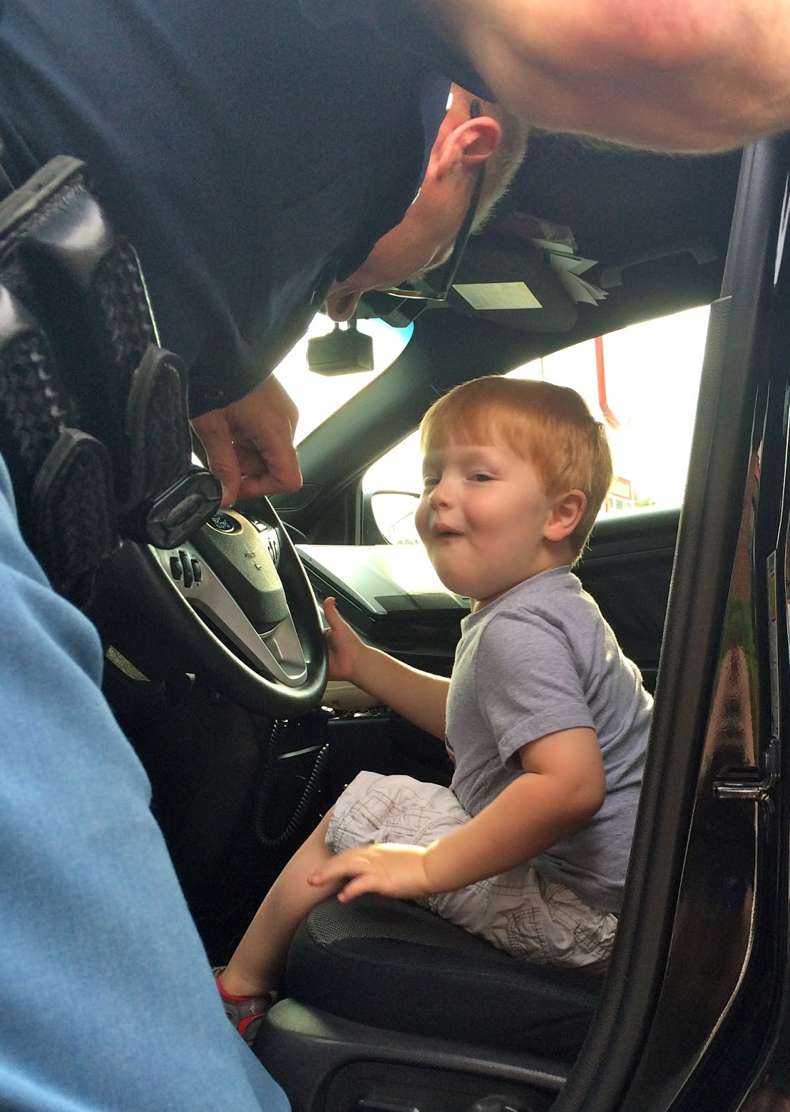 What a cute kid. I’ll be this is going to be one of the best memories of his youth. A fire engine AND a police cruiser? If you’d had a dump trunk in the area, you could have completed the trifecta.