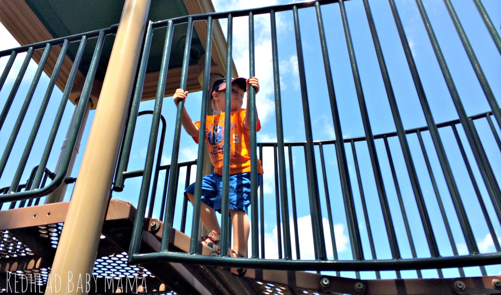 Red got some serious playtime in on a new playground area he’d never seen before, which meant that he was running, playing, spazzing out on the swings and flitting from step to step like a hummingbird with too many flowers to choose from.