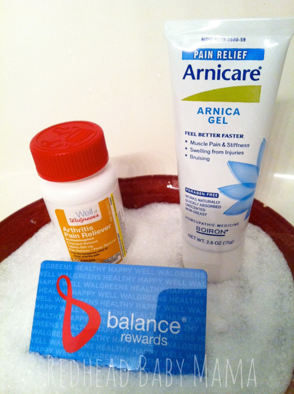I headed to my local Walgreens and got even more help from the friendly faces behind the pharmacy counter. The two ladies I spoke to guided me to the pain relief aisle and helped me locate the arnica gel among a sea of options. Acetaminophen medications abounded, and they helped me until I made the right selection for myself as well as my situation. I chose the Walgreens brand acetaminophen targeted for arthritis as well as some epsom salts to soak my muscles in and some arnica gel to massage into my joints and aching parts. There were multiple brands and price points for me to choose from, and that made me a happy camper.