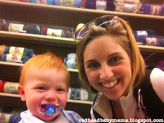 When Red and I went to the hobby store last Friday the 13th, we took a few pictures in the yarn aisle for kicks. In front of the yarn ball KITS. Oh yes, now you, too, can make homemade yarnballs!