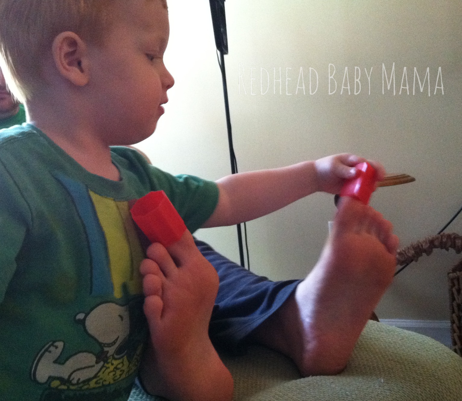 “Shapely” Toes September 10, 2013 14 Comments Share Tweet Pin FYI, shape-sorter pieces fit perfectly onto your toes. They can also be worn while you walk, apparently. Share Tweet Pin